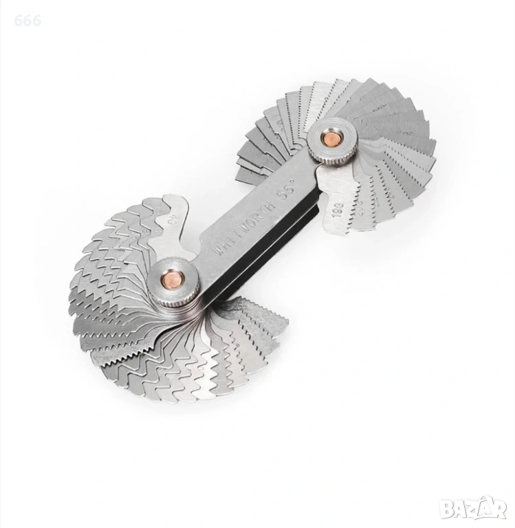 Това е индикатор за резба/винт от 55 градуса и 60 градуса със заключващо устройство. Обикновено се използва за проверка дали определянето на размера на резбата е правилно, използвайте габарити на резба с различни размери за точно измерване на вътрешни и външни резби