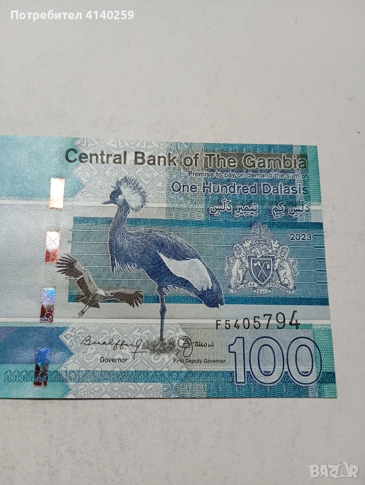 ГАМБИЯ БАНКНОТА 100 ДАЛАСИ 2023 Г СЪСТОЯНИЕ НОВО ПОЛУЧАВАТЕ СНИМАНАТА БАНКНОТА РАЗГЛЕДАЙТЕ ДРУГИТЕ МИ ОБЯВИ ДА КОМБИНИРАТЕ ДОСТАВКА ЕКОНТ ЗА ВАРНА ЛИЧНО