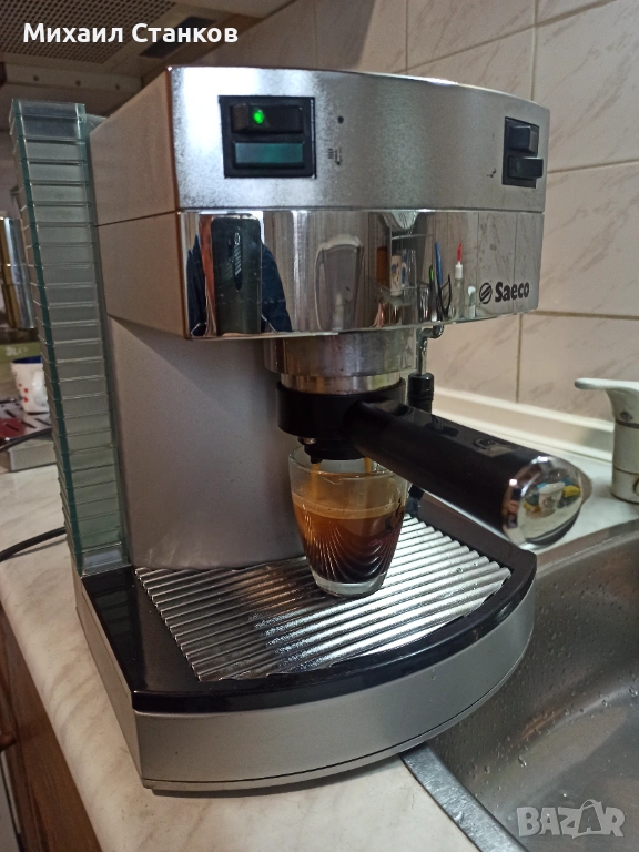 Кафе машина Саеко Гран крема с ръкохватка крема диск работи перфектно и прави супер кафе с каймак