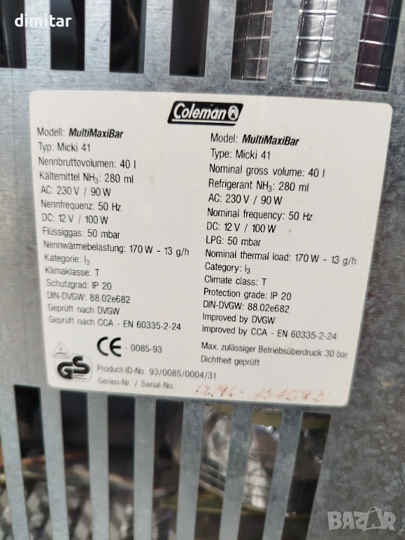 Амонячен хладилник COLEMAN -12/220V- GAS - 40 литра → Обява 54143246