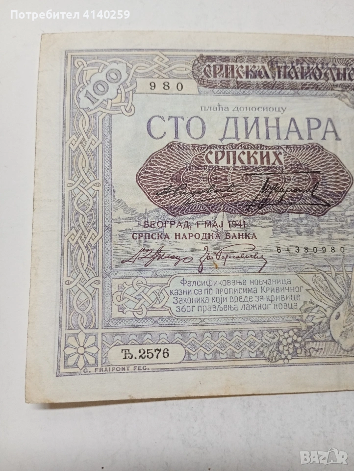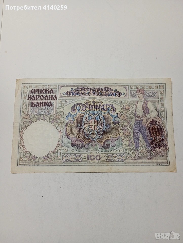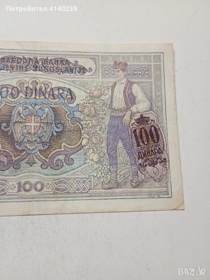 СЪРБИЯ БАНКНОТА 100 ДИНАРА 1941 Г СЪСТОЯНИЕ ВИДИМО ПОЛУЧАВАТЕ СНИМАНАТА БАНКНОТА РАЗГЛЕДАЙТЕ ДРУГИТЕ МИ ОБЯВИ ДА КОМБИНИРАТЕ ДОСТАВКА ЕКОНТ ЗА ВАРНА ЛИЧНО