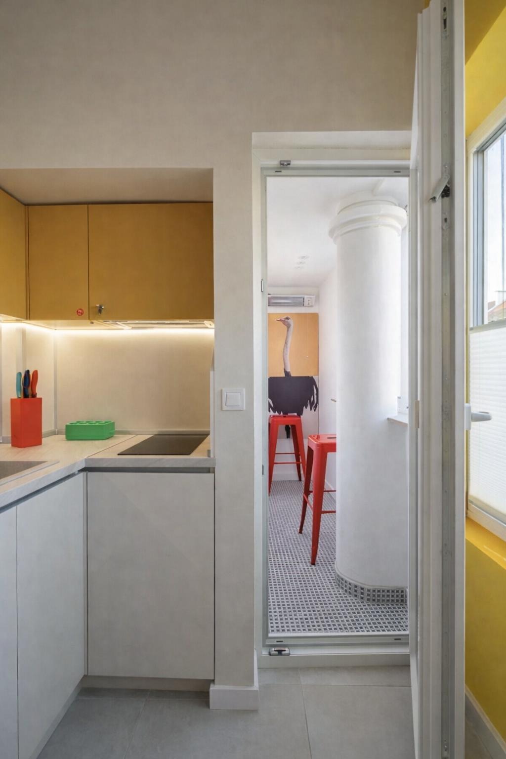Разпределението включва хол с кухненски бокс, спалня, баня с тоалетна и остъклена тераса. Апартаментът е обзаведен и разполага с отопление на ток. Имотът е близо до спирки, което улеснява градското придвижване.