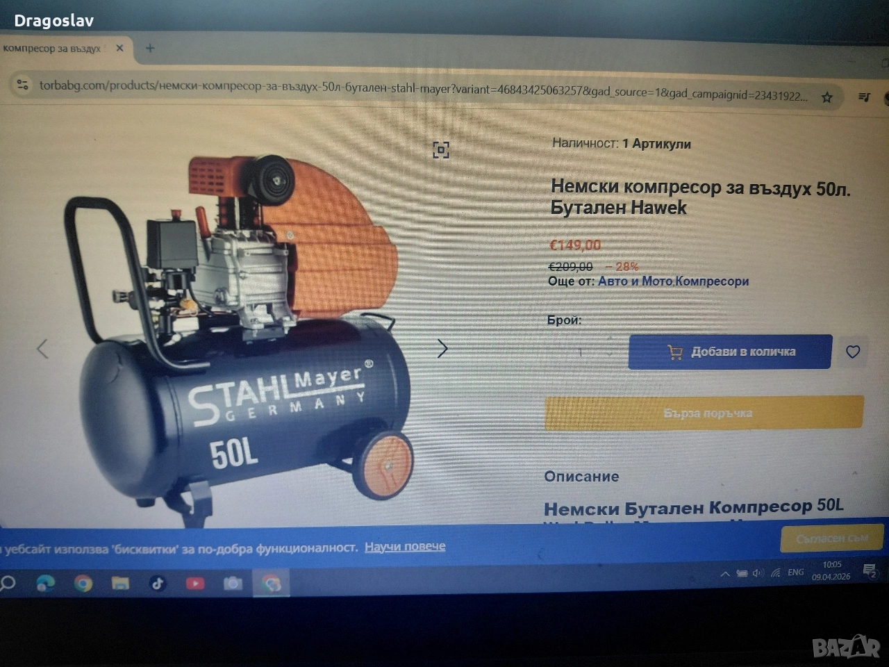 Prodavam kompresor za vazduh 50.litra HAWEK,nemski,, снимка 1 - Компресори - 54143380 Prodavam kompresor za vazduh 50.litra HAWEK,nemski,, снимка 2 - Компресори - 54143380 Prodavam kompresor za vazduh 50.litra HAWEK,nemski,, снимка 3 - Компресори - 54143380 1/3