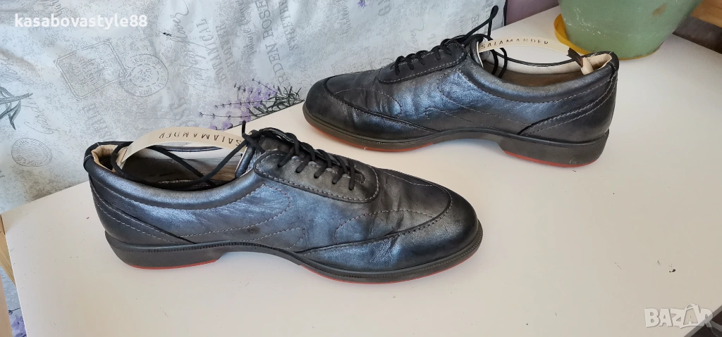Сребристо-сини дамски обувки от естесвена кожа в перфектно състояние. Моделът се отличава с комфортно ултра гъвкаво ходило с едър непързалящ се грайфер и класически спортно-елегантен дизайн с височина 2см.Цялостна височина отзад 9см.Дължина на стелка 24.5см.