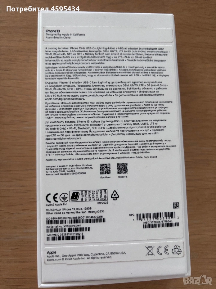 iPhone 13 син цвят 128 GB → Обява 54143594