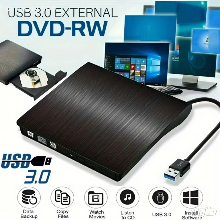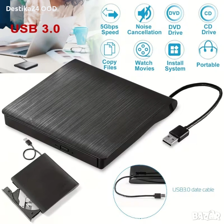Външно CD DVD устройство USB 3.0 компактно за лаптоп → Обява 54143604