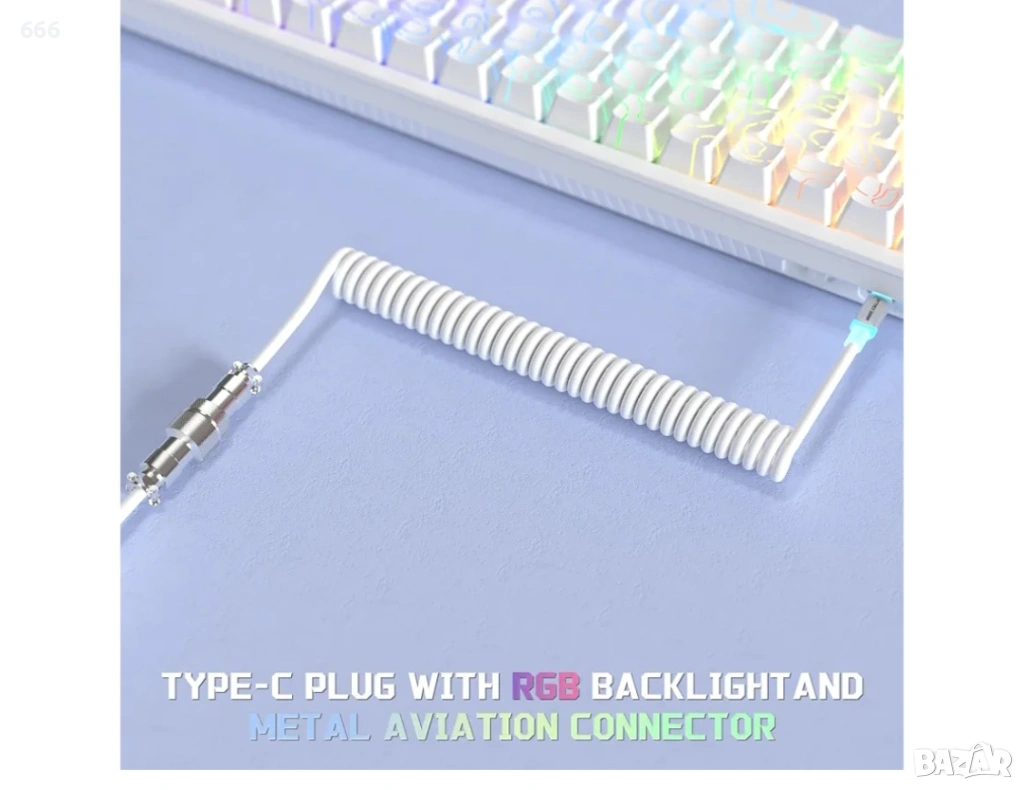 ATTACK SHARK C01 Ultra RGB спирален кабел за геймърска клавиатура Type-C към USB-A