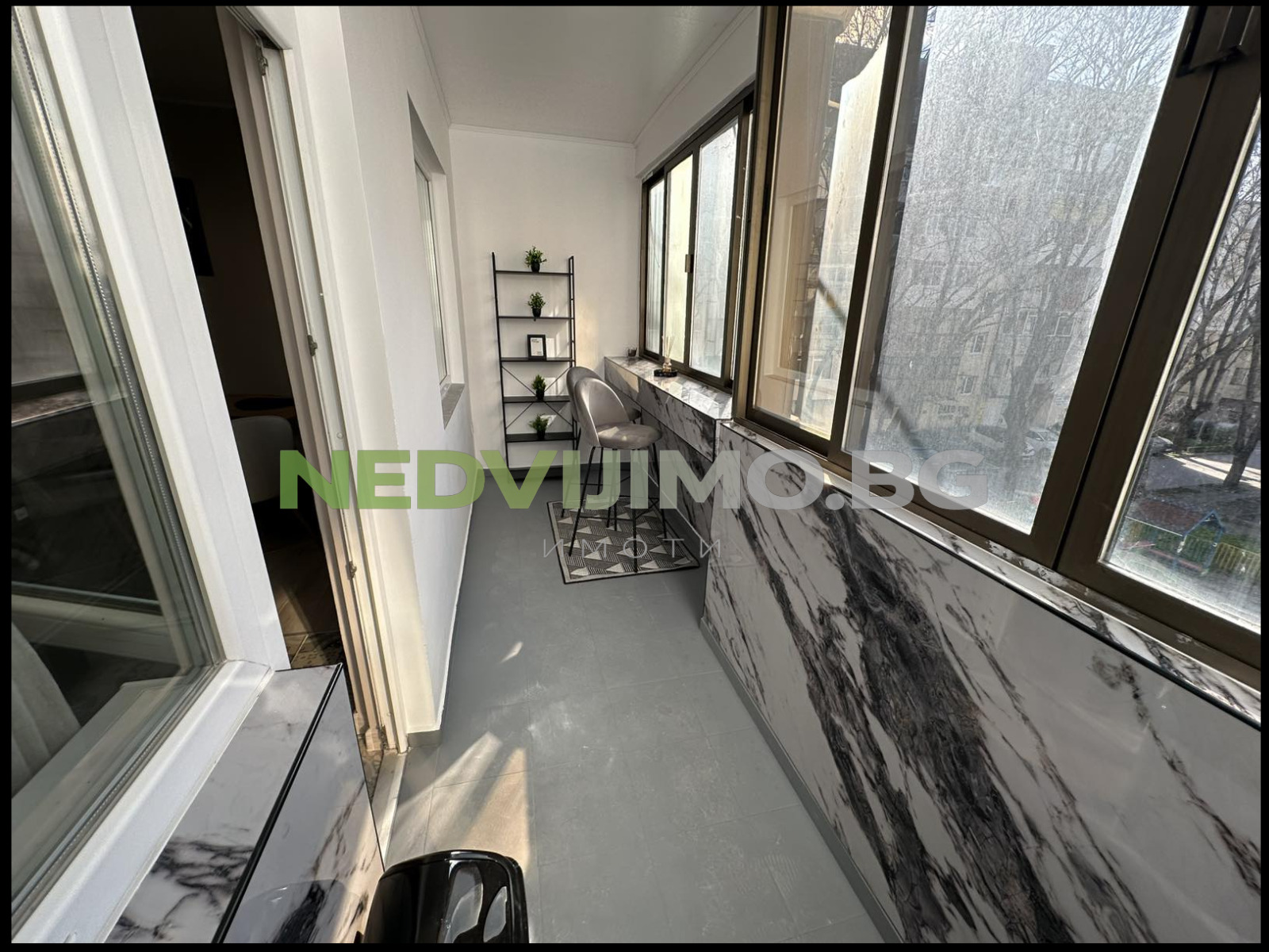 Жилището разполага с широк коридор, светъл хол с излаз на тераса, оформена като бар зона с високи столове щъркели чудесно място за уют и релакс.
