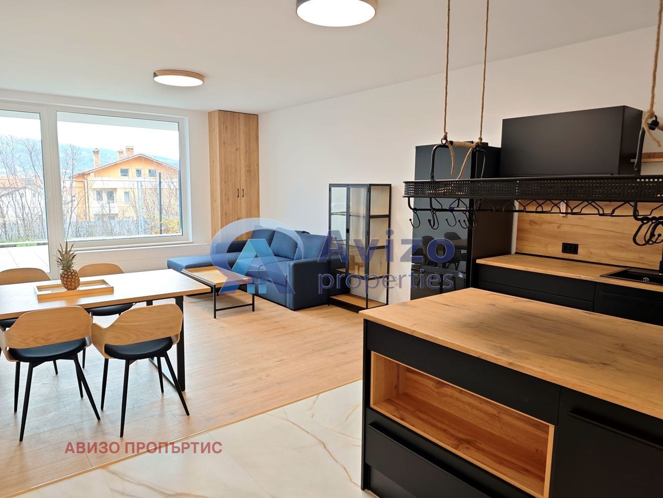 Светла всекидневна, изпълнена с естествена светлина. Напълно обзаведена модерна кухня с вградени всички електроуреди, кухненски шкаф тип остров с бар зона, трапезна зона и функционална холова част с мека мебел и ТВ зона. Голям балкон на партерно ниво с място за поставяне на маса със столове и допълнително зона с тревна площ, изложение изток-юг, прекрасно място за сутрешно кафе.