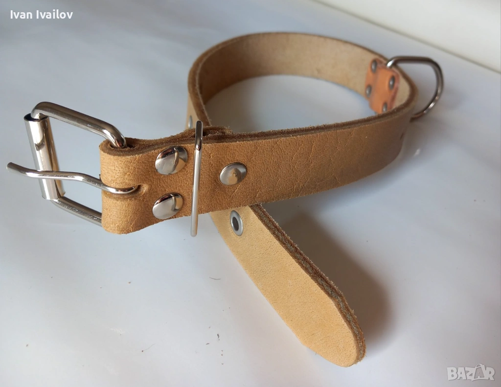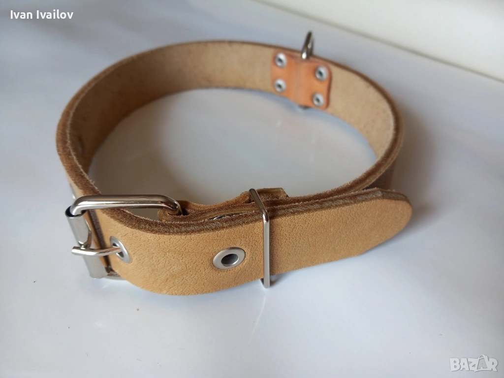 Продавам нов нашийник от висококачествена естествена кожа в натурален керемиден цвят. Изключително здрав и надежден модел, подходящ за средни породи кучета.