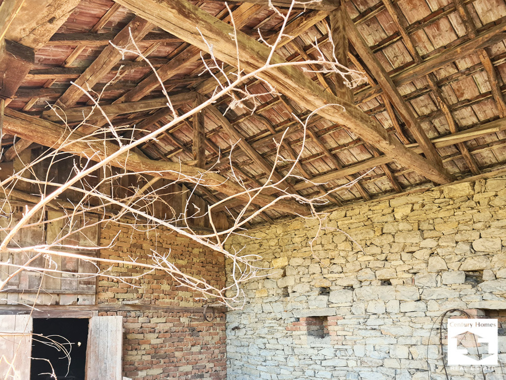 Имотът е с площ от 890 кв. м. и включва стара двуетажна къща с долепена пристройка, както и добре запазена каменна плевня, която придава автентичен възрожденски облик на мястото.