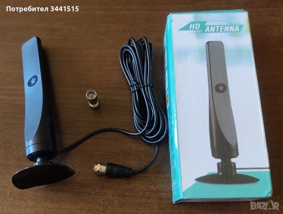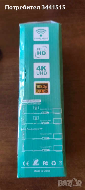 открито. Свързва се директно към телевизора чрез коаксиален кабел и не