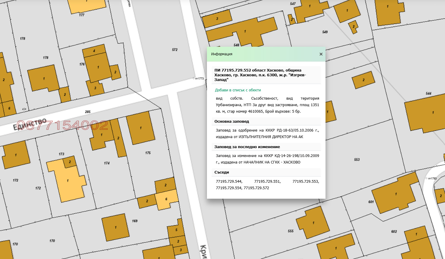 адрес на имота: гр. Хасково, ул. Кричим 46
