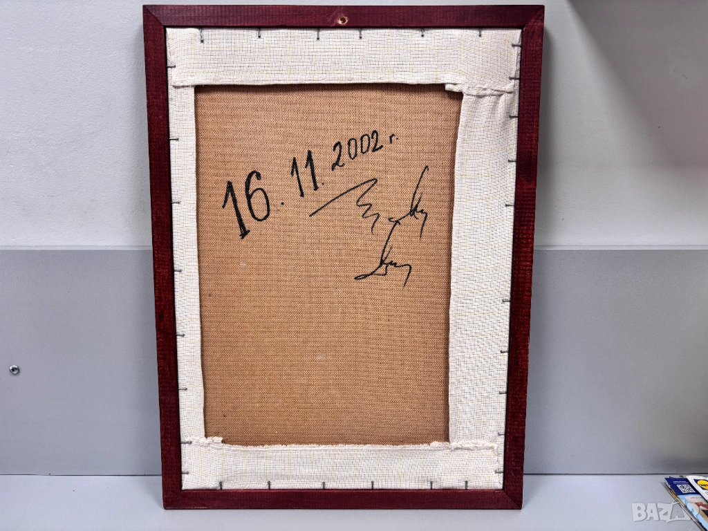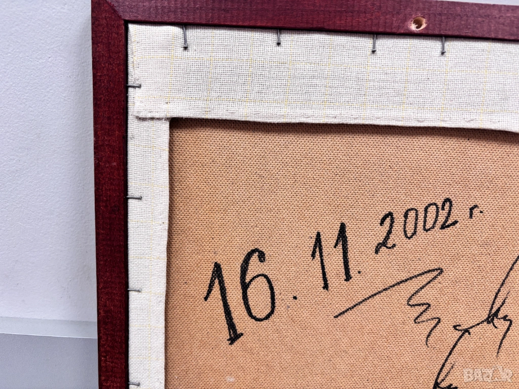 Готов, ушит, с дървена рамка.