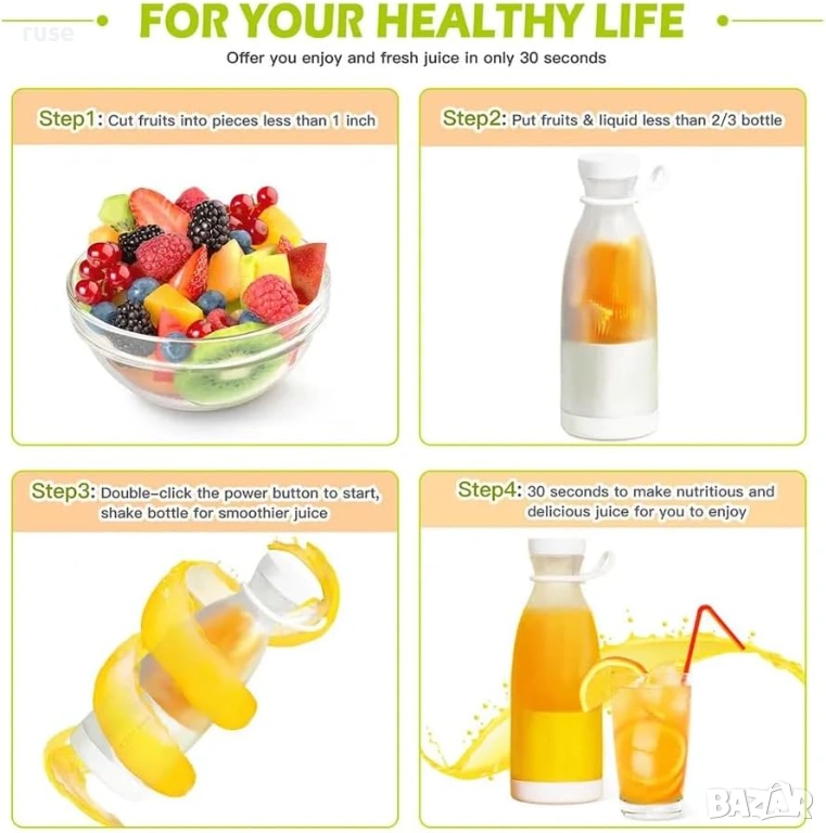 НОВИ! Преносим USB блендер за пресни плодове 420мл