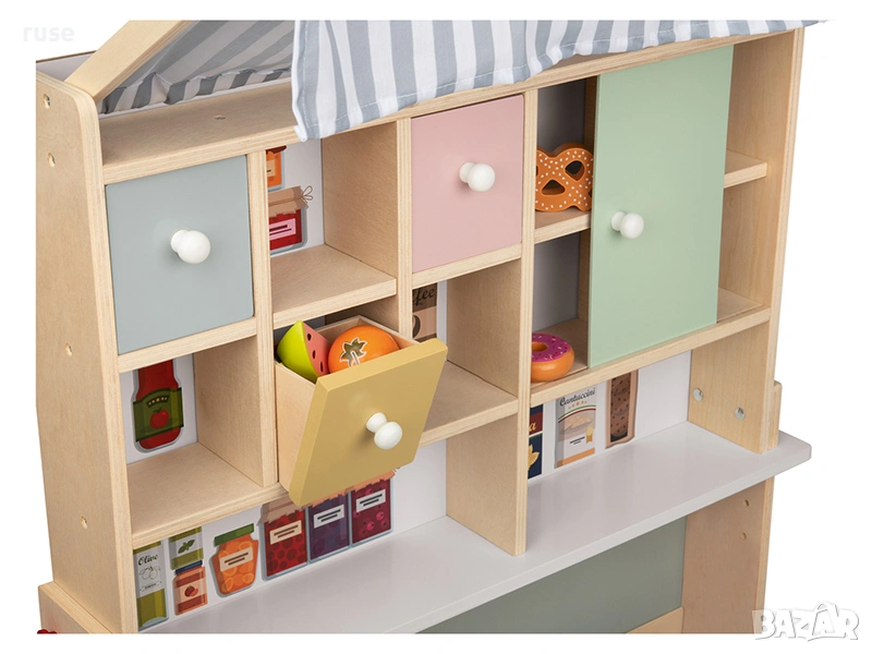 НОВИ! Дървен детски магазин щанд с черна дъска и тента 83x110x75см
