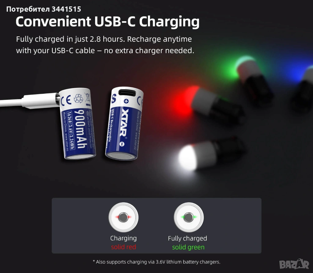 • Модел: XTAR 16340 USB-C