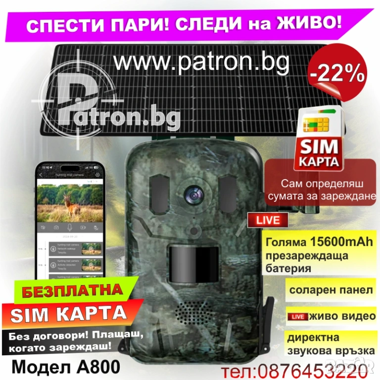 Соларната камера A800 е създадена като практично решение за наблюдение в реални условия, където липсва електричество или интернет инфраструктура. Като 4G ловна камера със соларен панел, тя комбинира мобилна свързаност и автономно захранване, което позволява работа в отдалечени райони без нужда от допълнителни инсталации.