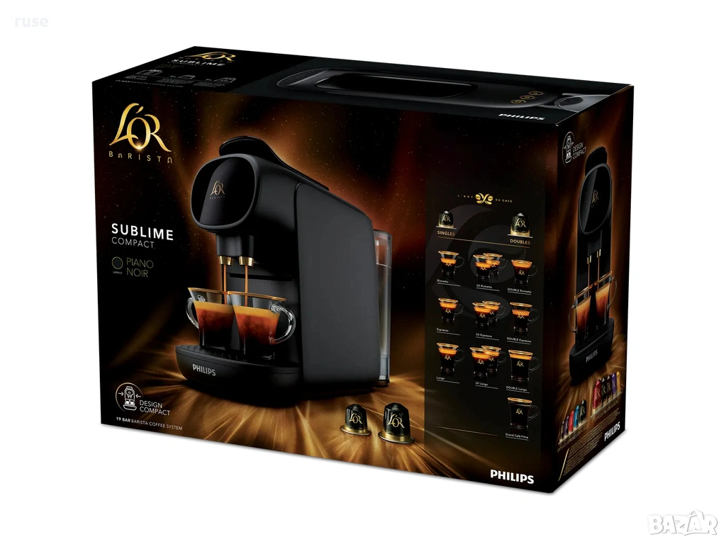 Philips L’Or Barista Sublime работи с нормални капсули, съвместими с Nespresso® и с иновативните капсули с двоен шот на L'OR. Капсулите с двоен шот ви позволяват да приготвите или две чаши еспресо наведнъж, или една по-голяма чаша еспресо. Само с една капсула!