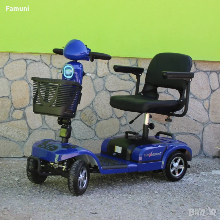 Електрическа четириколка за възрастни хора и инвалиди със сваляема батерия.