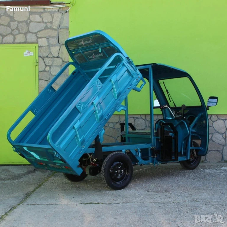 Електрическа Селскостопанска Триколка с Покрив 2000W СИНЯ