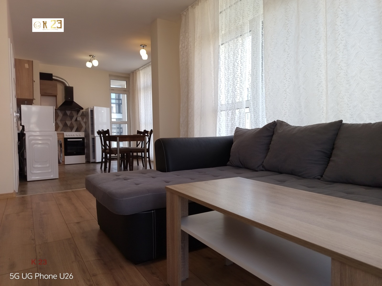 Входно антре с портманто, просторна дневна с обособен кухненски бокс и трапезарна част, самостоятелна тиха спалня, баня с тоалетна и тераса с хубава панорамна гледка, благодарение на високия етаж.