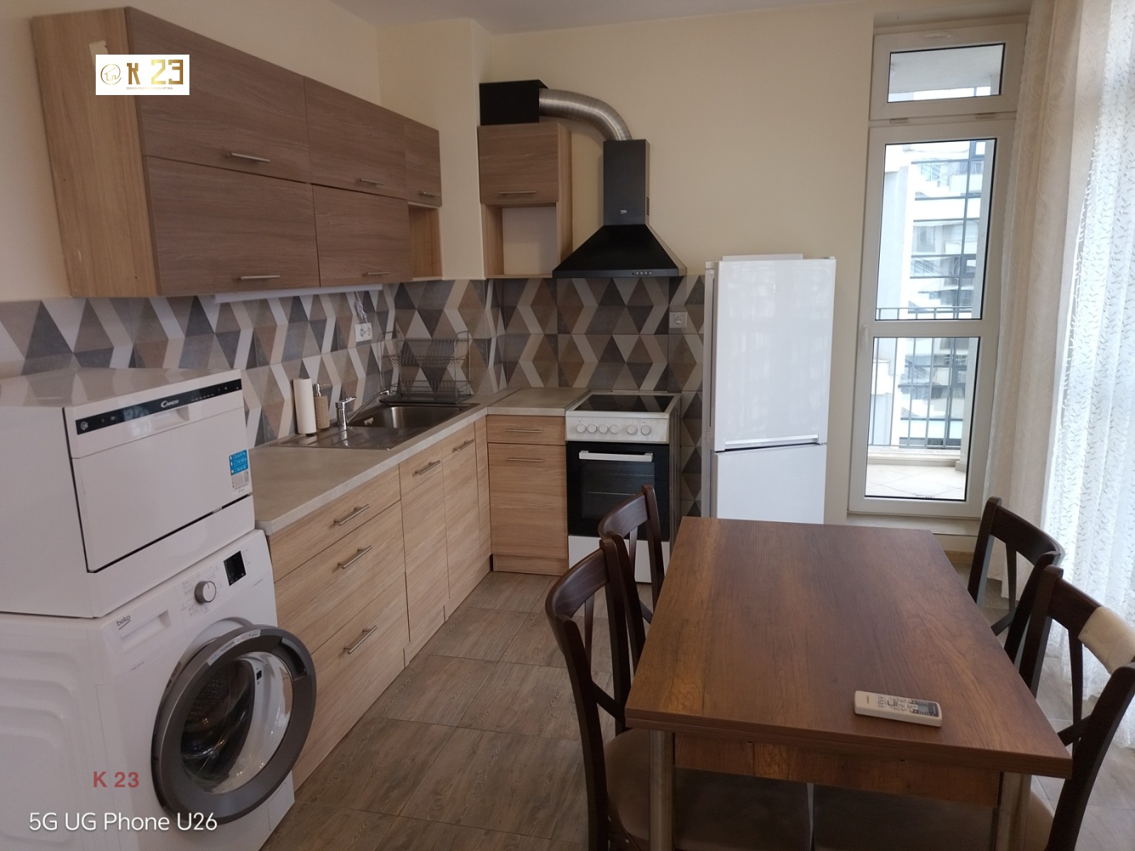 Апартаментът е в отлично състояние и се отдава напълно обзаведен. Кухнята е оборудвана с всички необходими електроуреди (хладилник, готварска печка, котлони, абсорбатор, пералня). Дневната и спалнята разполагат с удобни и запазени мебели, предоставящи пълен комфорт за бъдещите наематели.