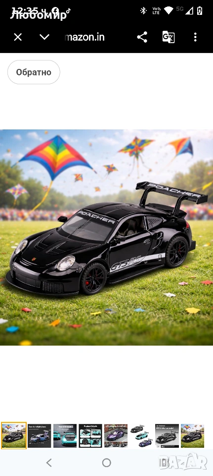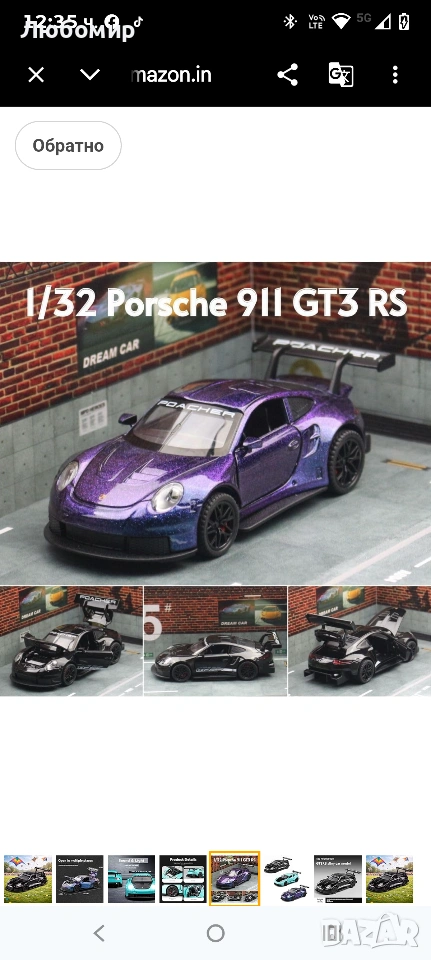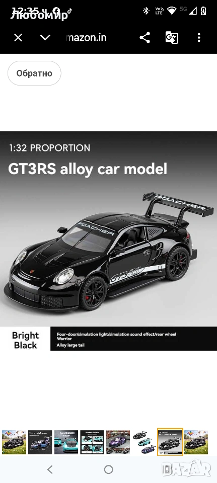 1:32 Porsche 911 GT3 RS Метална кола с дърпаща се задна част – 4 отварящи се врати със звук