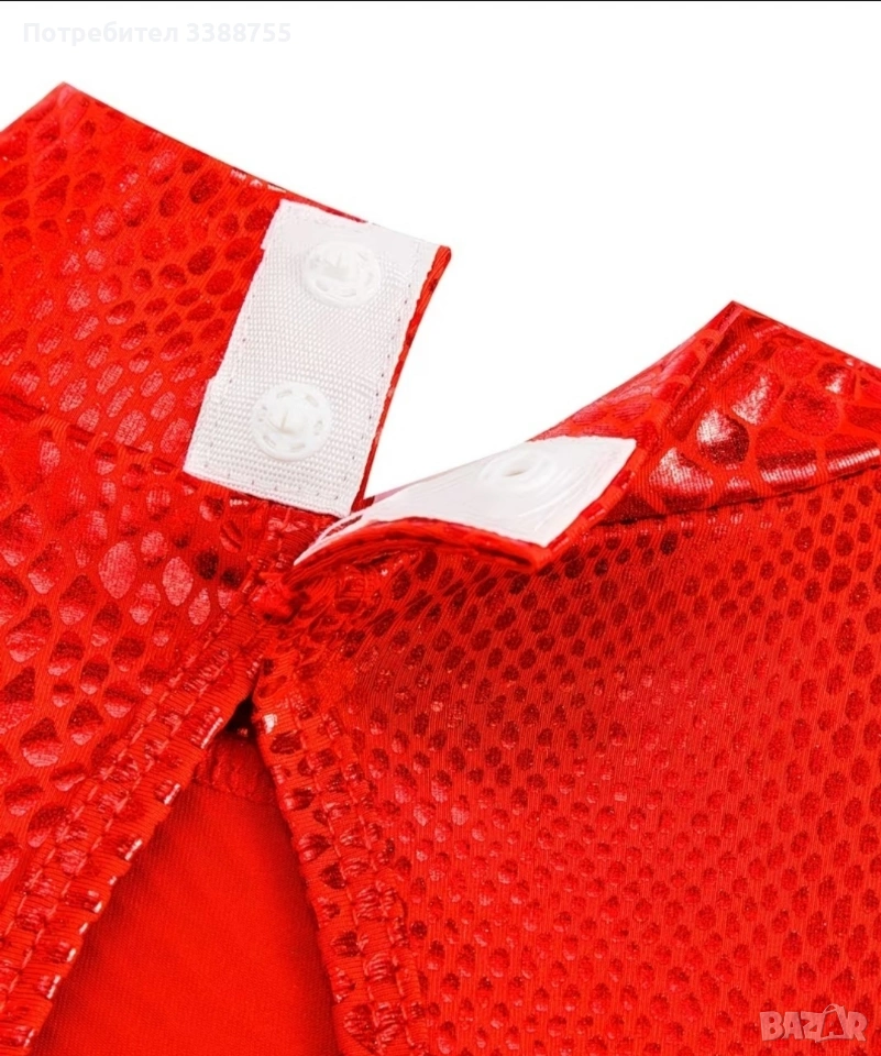 Красива рокля за спортни танци в червен цвят с блясък. Размер до 150 см. Материя - полиестер.