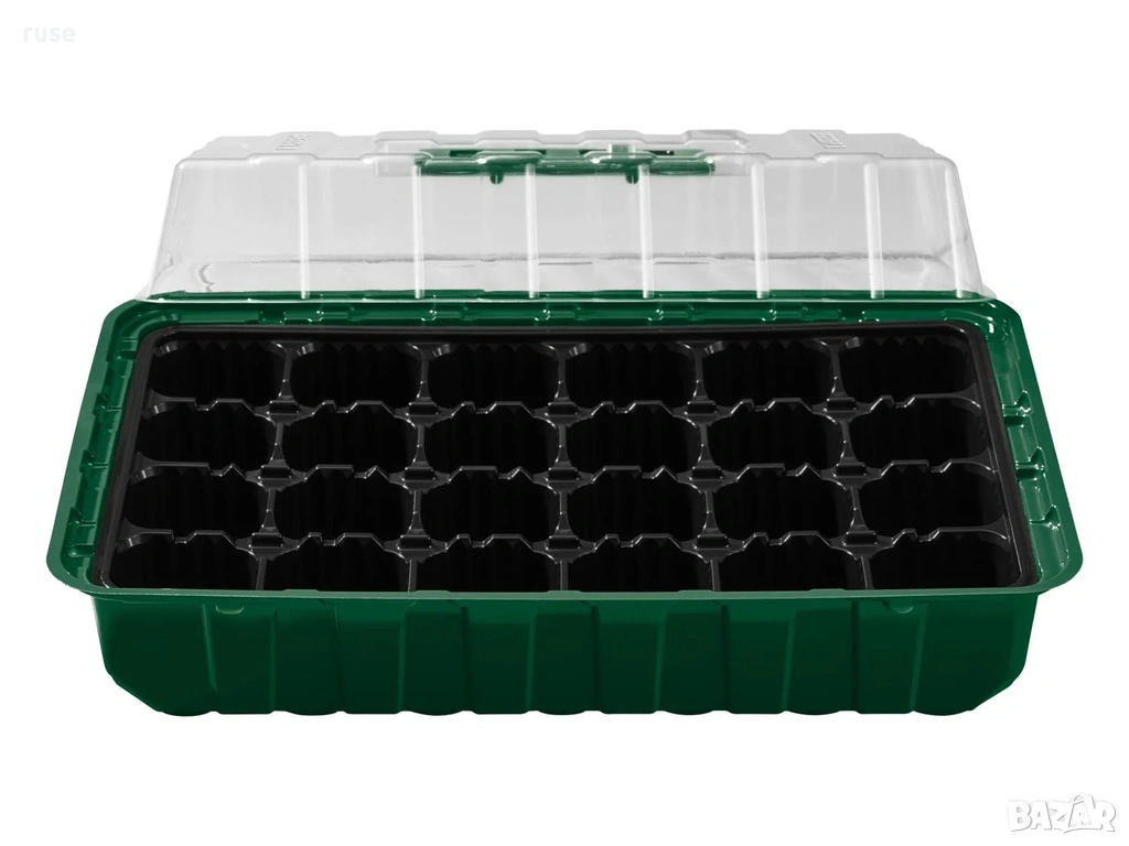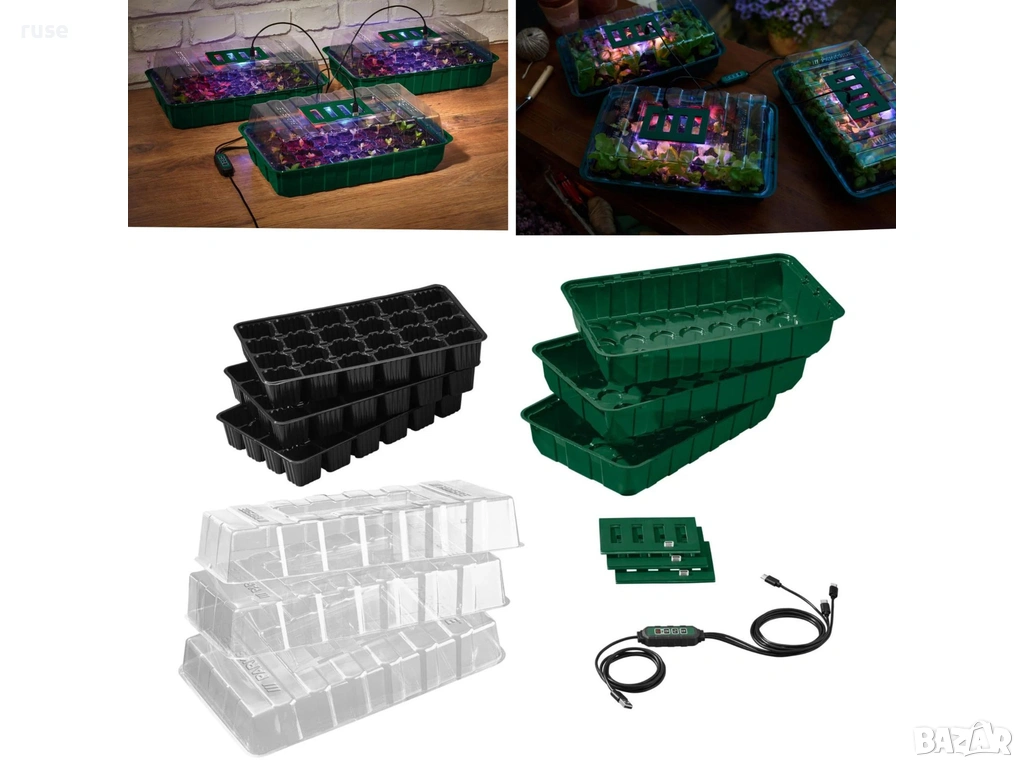 - 3 сандъчета за отглеждане, всяка с 24 места за засаждане и прозрачен капак