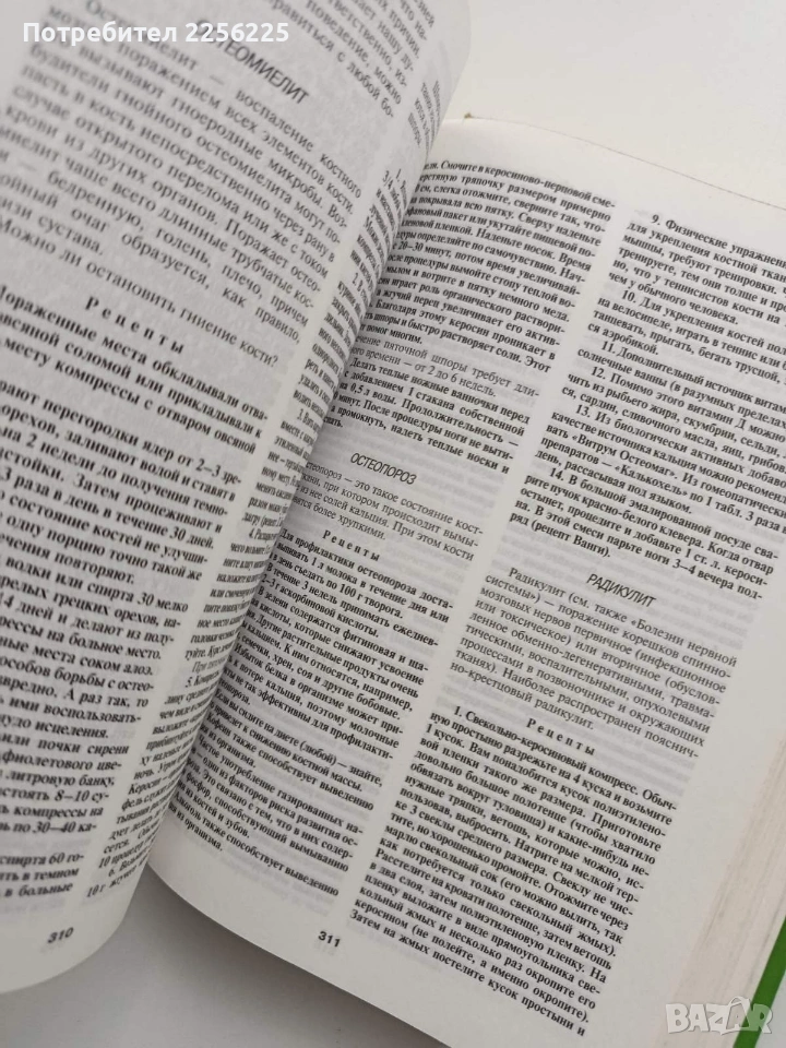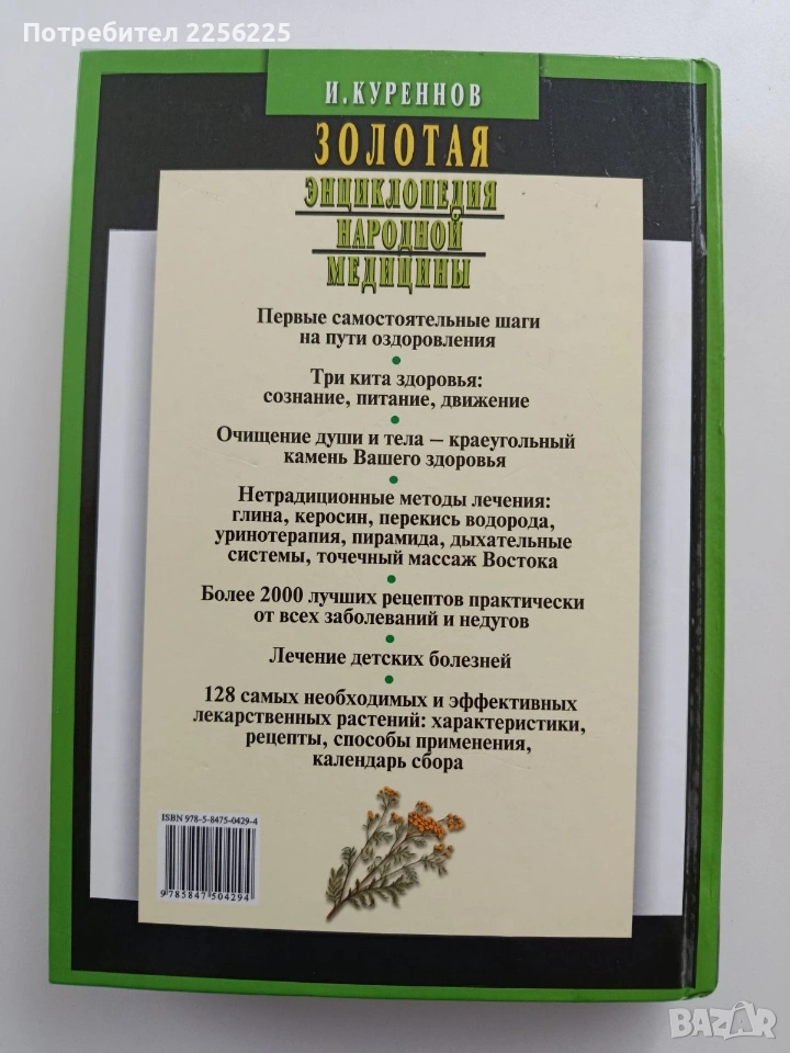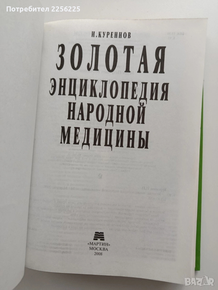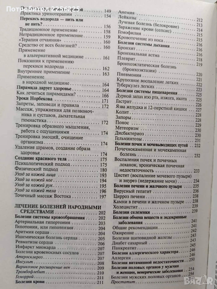 Книга на руски език. Твърди корици 511 страници .Добро състояние .Формат 240/170мм .Обширен справочник, който събира вековна народна мъдрост и практически рецепти за здраве. Трите стълба на здравето, методи за пречистване, фитотерапия и лечебни средства, нетрадиционни методи, рецепти от Изтока. Цената е без коментар.
