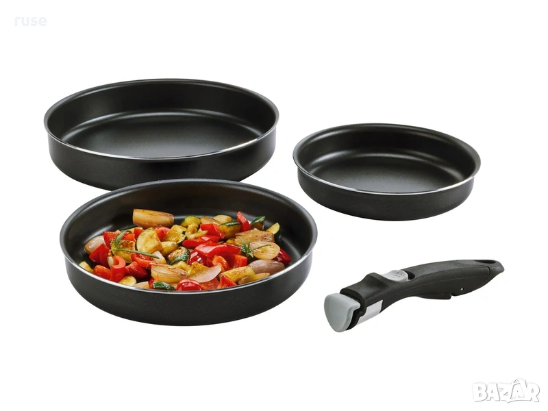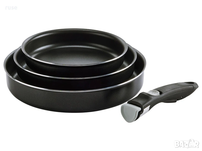 Съдържа: 3x тигана, 1x дръжка