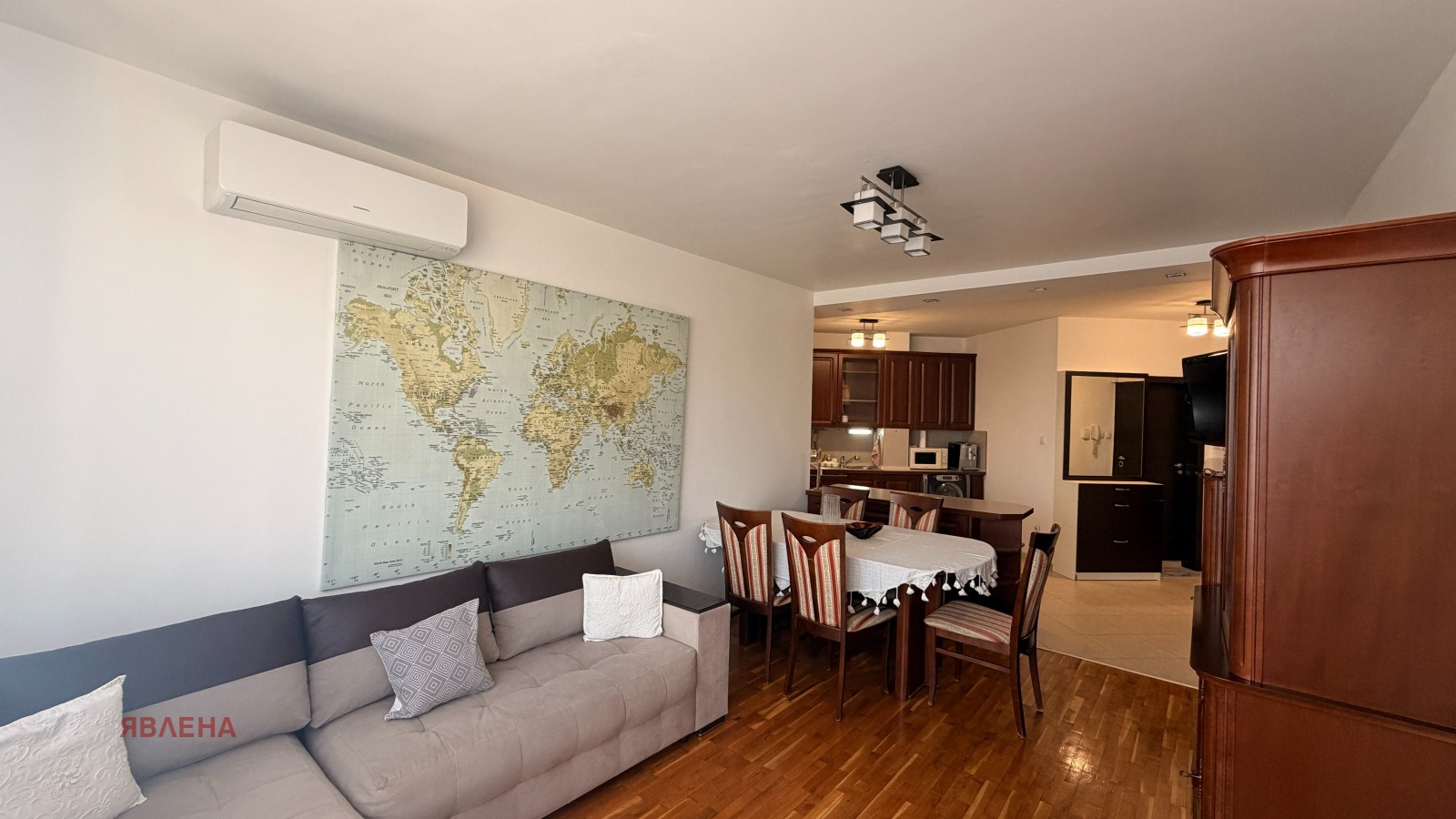 Апартаментът е напълно обзаведен и оборудван с всички необходими мебели и електроуреди.