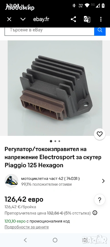 Регулатор/токоизправител на напрежение Electrosport за скутер Piaggio 125 Hexagon.Регулатор/токоизправител на напрежение. - Piaggio 2920335. - Диаметър на монтажния отвор: 8 мм. - Разстояние между монтажните отвори: 92 мм. Тип превозно средство: 1994 до 1997. - Дължина: 108 мм. Номер на частта от производителя.