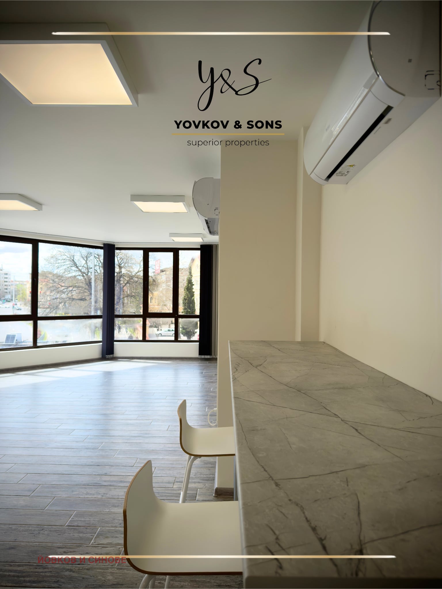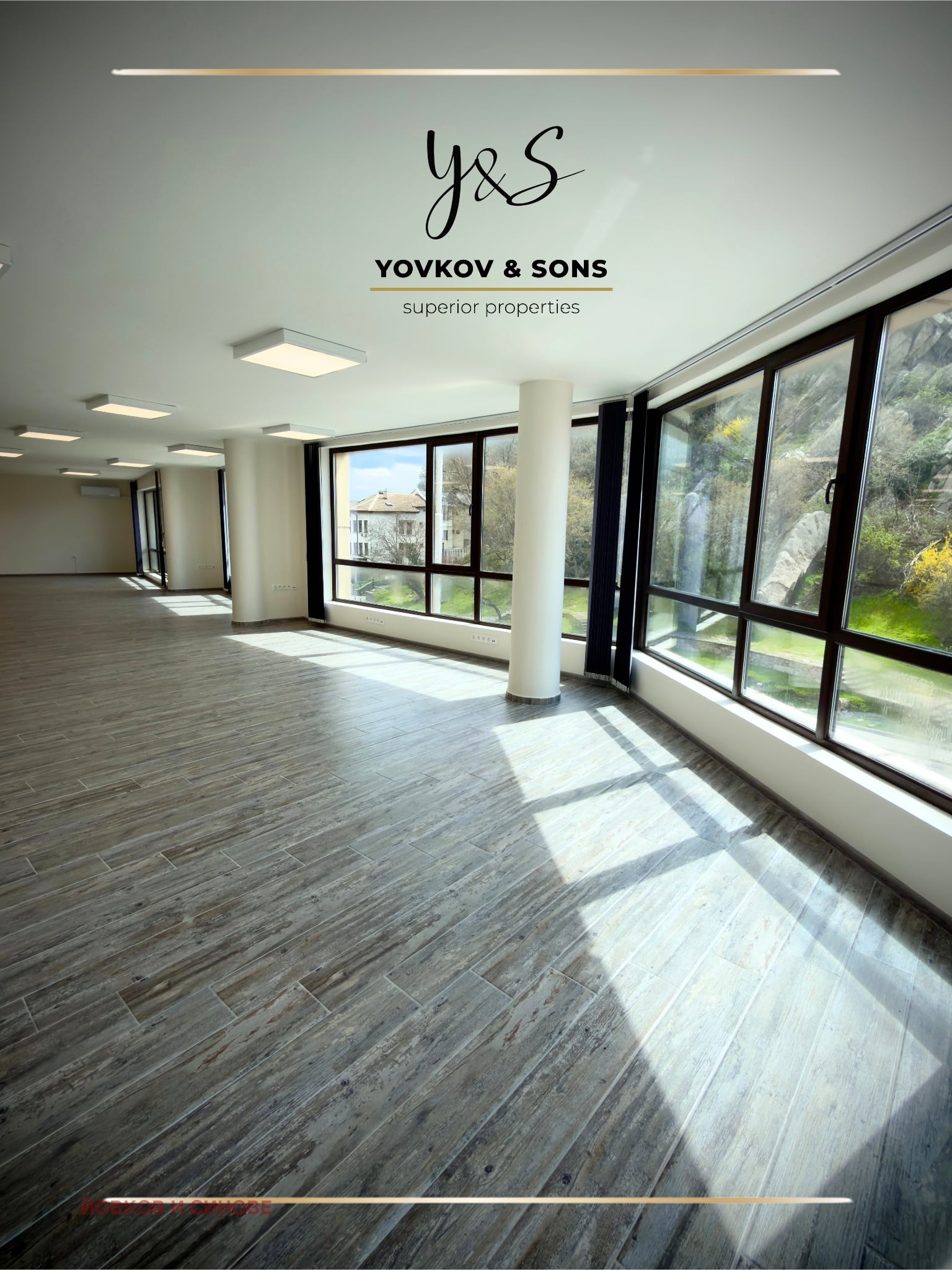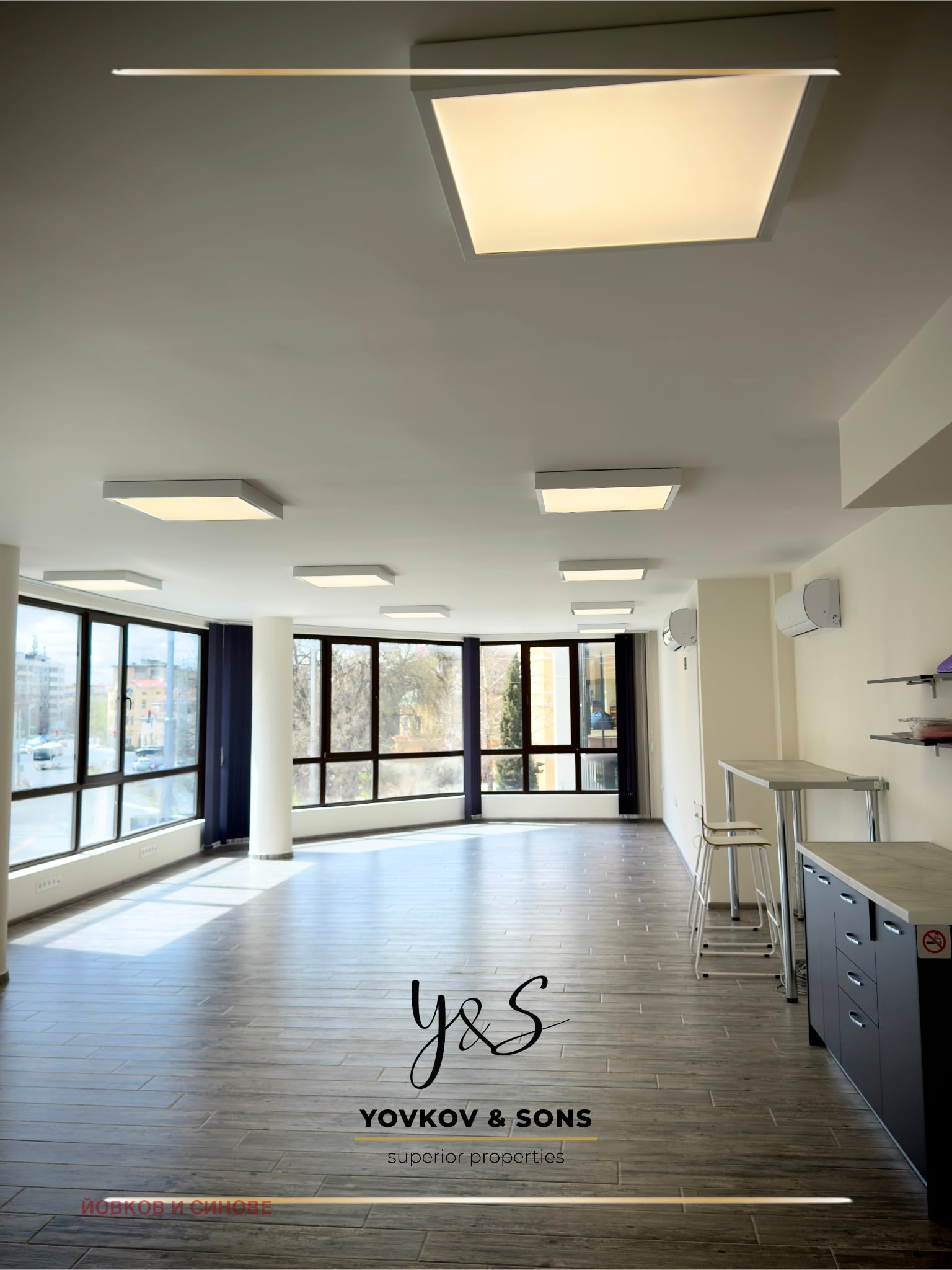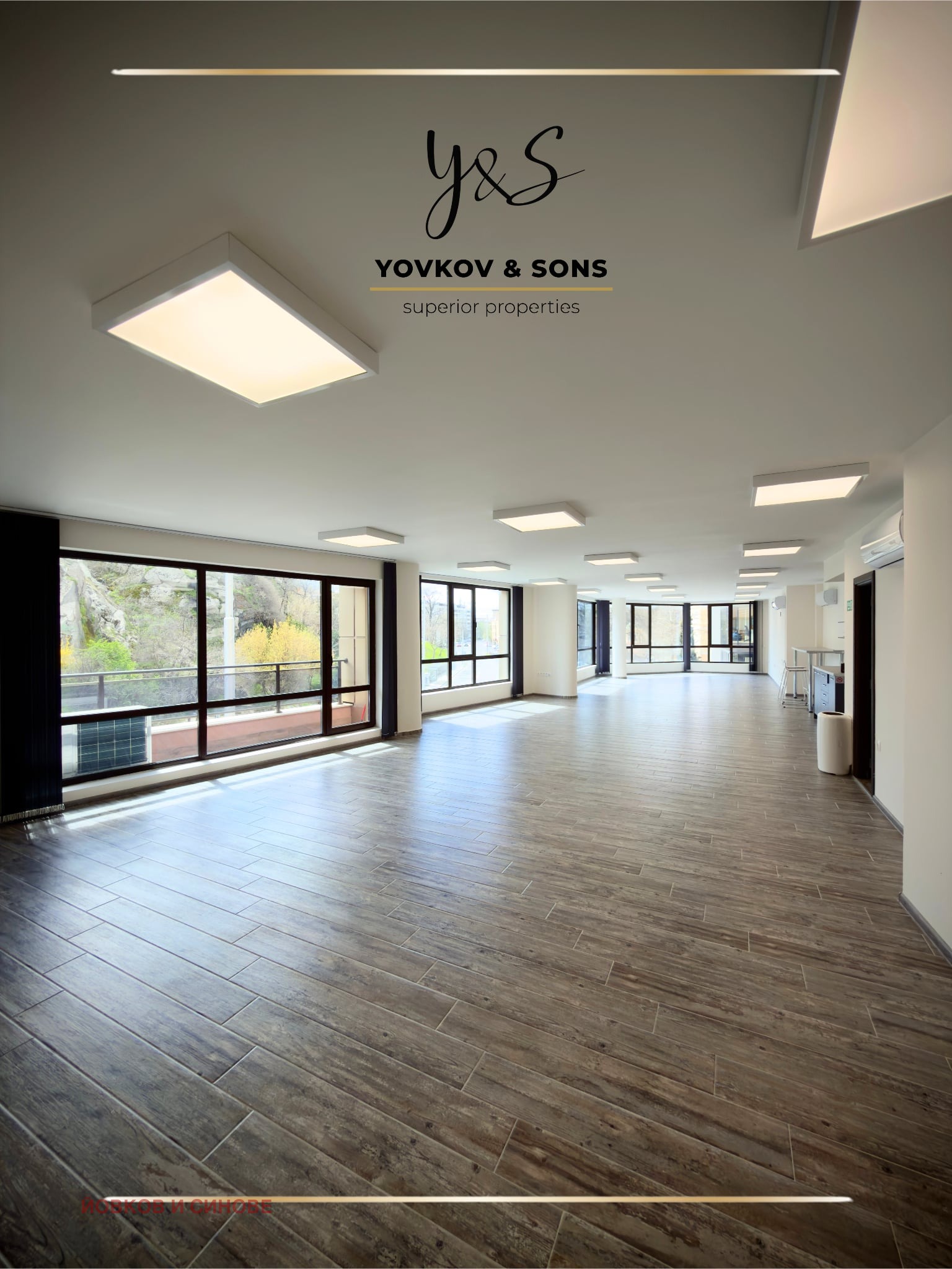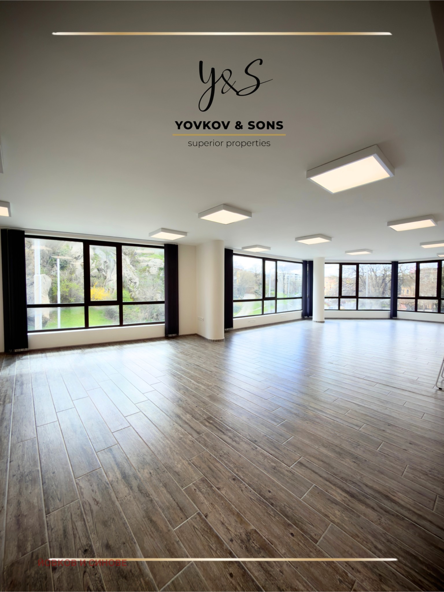 Френските прозорци и южното изложение осигуряват светлина в цялото помещение, разкриват зашеметяваща гледка към едно от тепетата, както и към булеварда. За по-късните часове от денонощието, когато слънцето се скрива, са монтирани над 15 осветителни тела, за да продължите комфортно работния Ви процес.