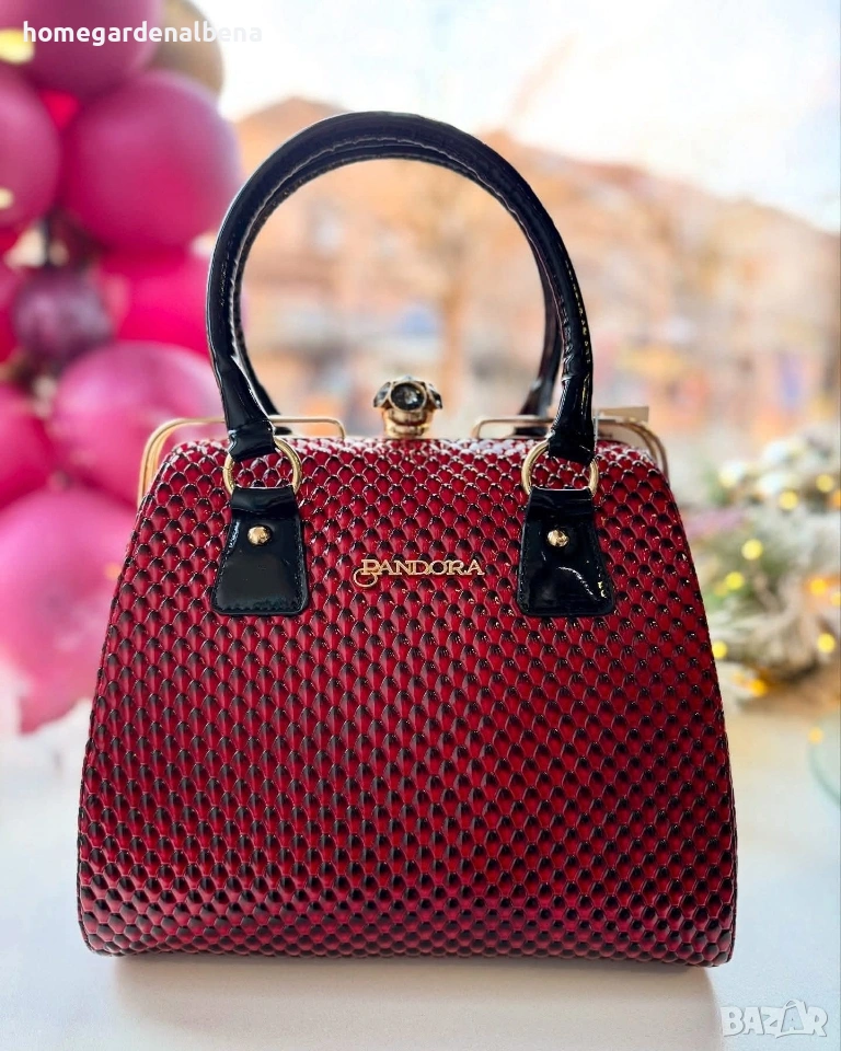 Ключови думи: дамска чанта, чанта доктор, тъмночервена чанта, бордо чанта, лачена чанта, еко кожа, релефна текстура, златна рамка, кристална закопчалка, луксозна чанта, дамски аксесоари