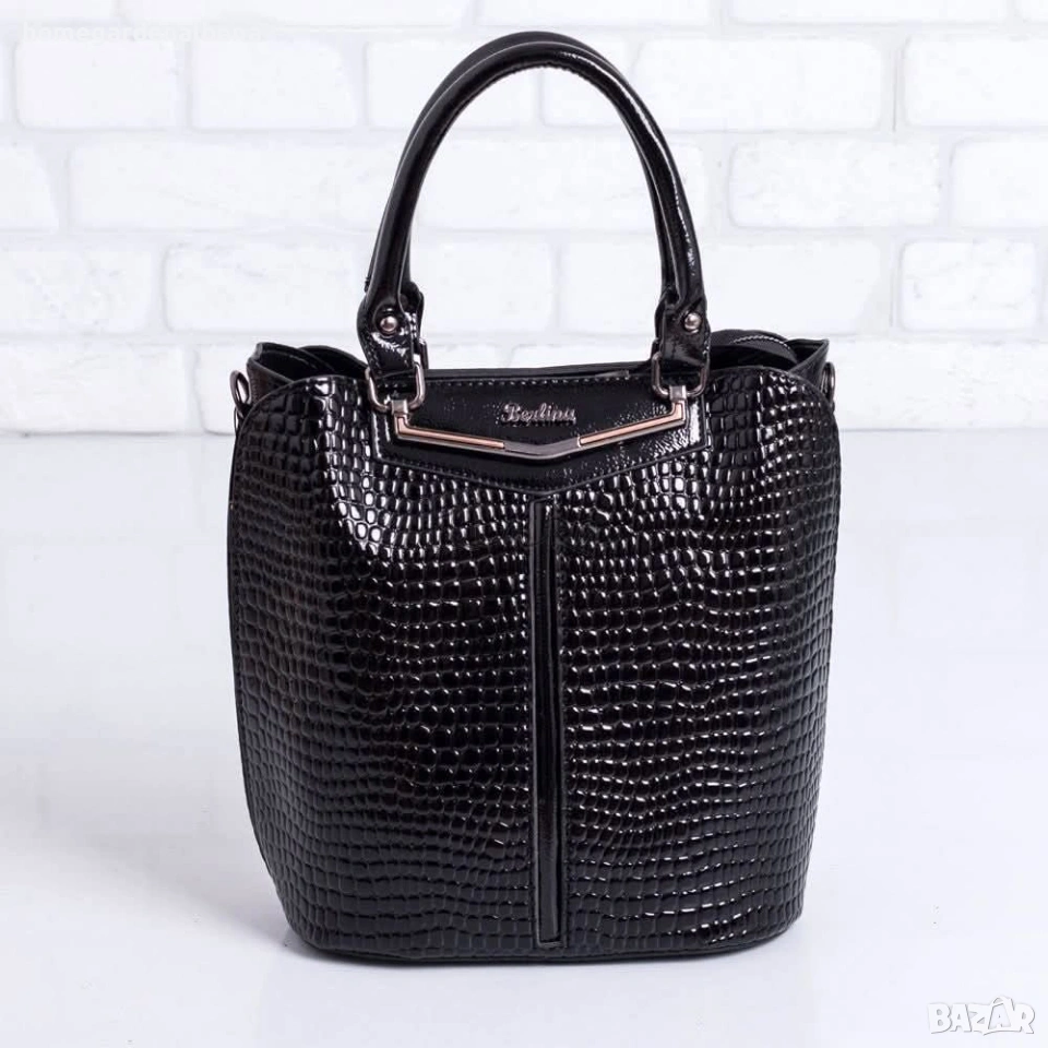 Ключови думи: дамска чанта, bucket чанта, черна чанта, лачена чанта, еко кожа, крокодилска щампа, розово злато, чанта за рамо, елегантна чанта, дамски аксесоари