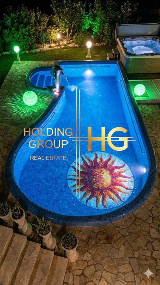 Къщата е изградена в средиземноморски стил, отоплението е на пелети, монтирана е СОД система. Наличен е 200 литров бойлер и 2 000 литра хидрофор. Дворът е много добре аранжиран, изргаден е отопляем басейн с размери 8 м. х 4 м., алпинеум с бамбукова стена, декоративен фонтан, джакузи за 4 човека, масивно барбекю и поливна система. Имотът се предлага във вида от снимките - обзаведен с дизайнерски мебели, положен италиански гранитогрес и венецианска мазилка, френска камина с мраморна облицовка и много други екстри.