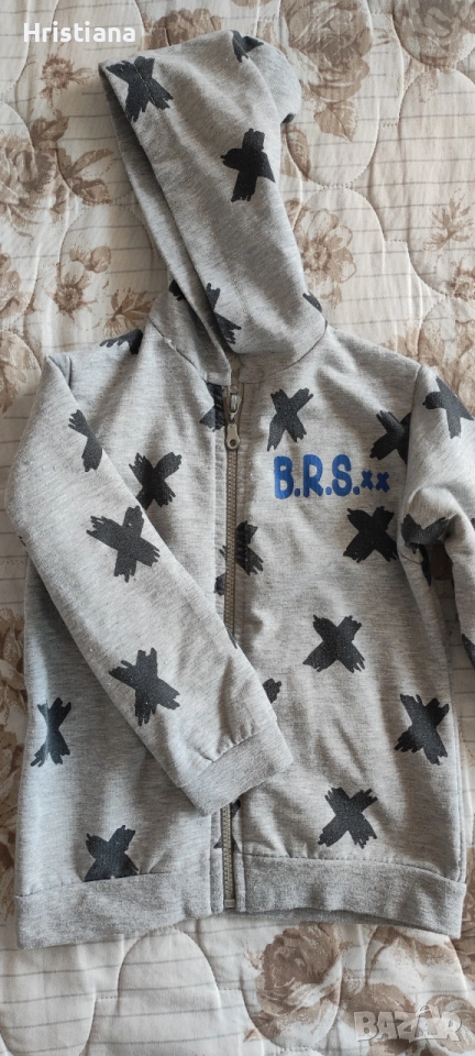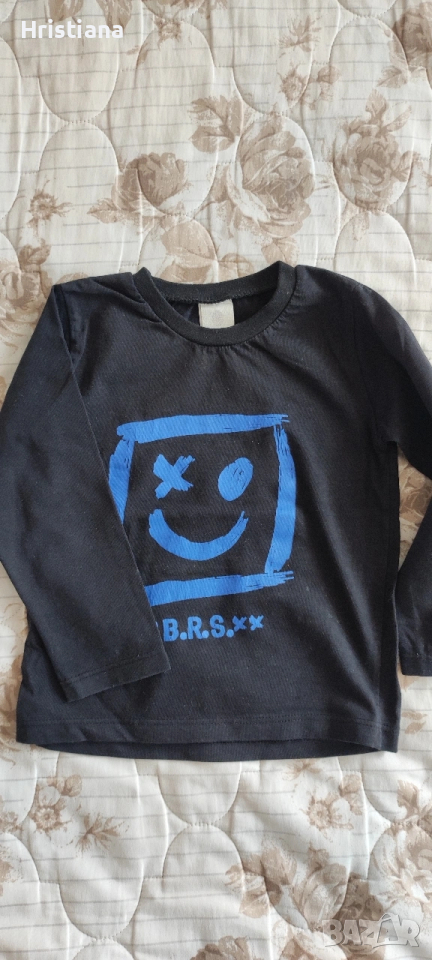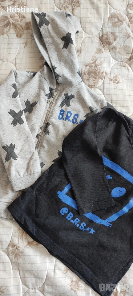 Суичър и блуза с дълъг ръкав, които са комплект, за момче, размерът е 86.