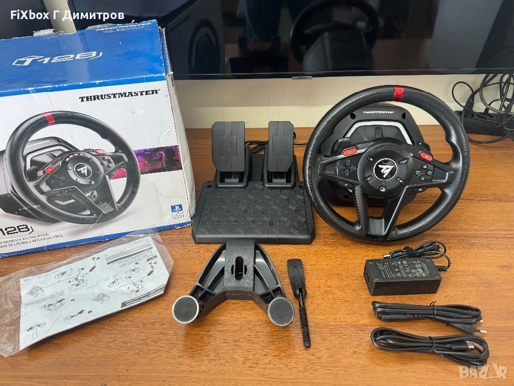 Продавам нов Волан с педали Thrustmaster - T128 съвместим , както с компютър така и с PlayStation 4 5 . Всичко е ново и в пълен комплект , но кашона е в лош вид . Разопакован е само за тест и снимки и не е играно с него.