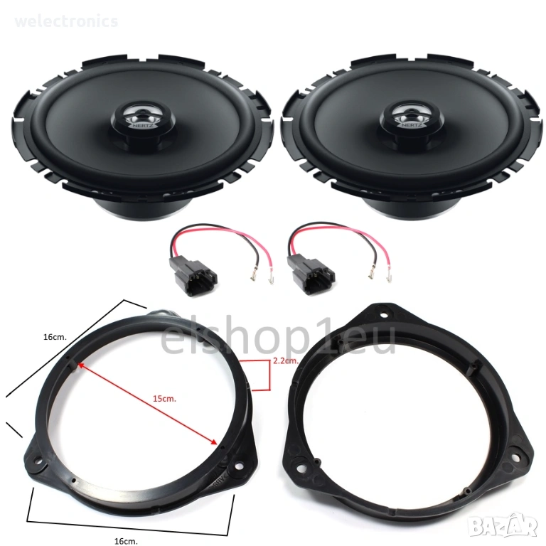-Комплекта включва:Говорители 16.5cm. 2бр./Фланци 2бр./Кабели 2бр.