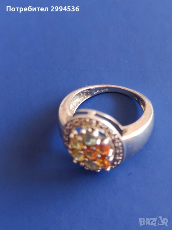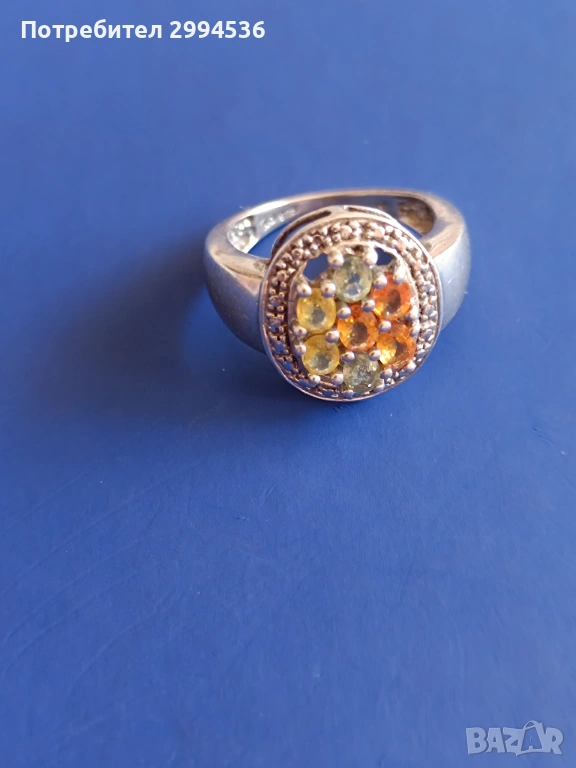Сребърен пръстен с натурални многоцветни сапфири, снимка 1 - Пръстени - 54146251 Сребърен пръстен с натурални многоцветни сапфири, снимка 2 - Пръстени - 54146251 1/2