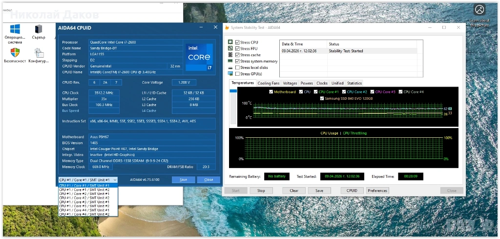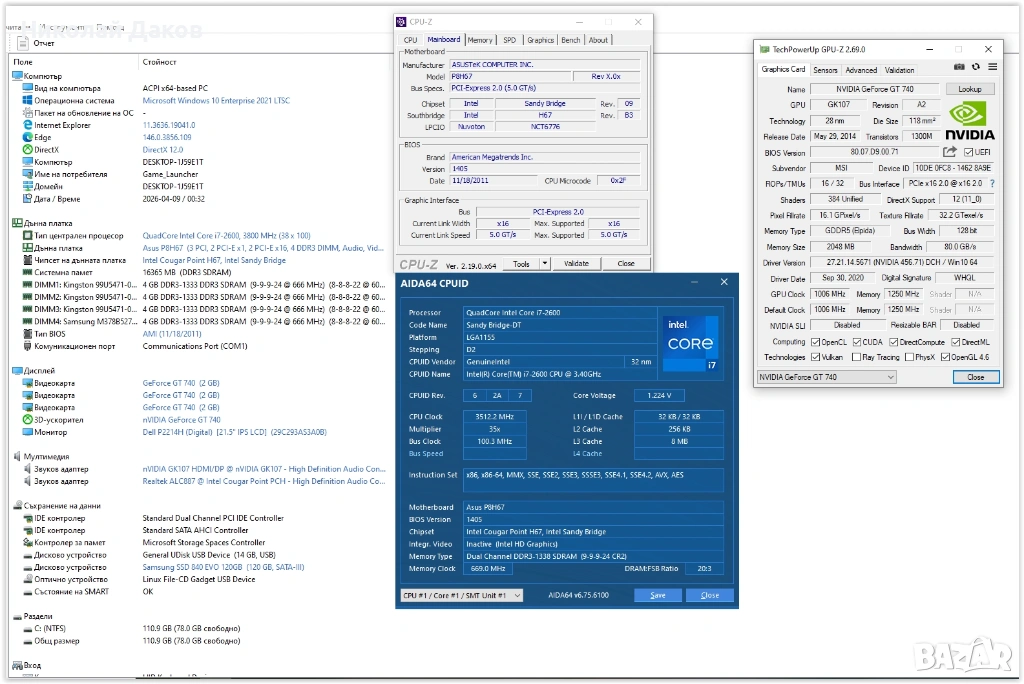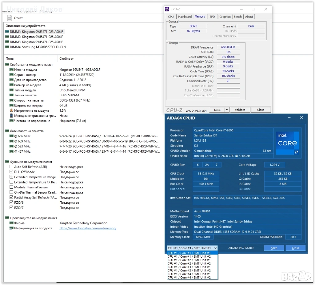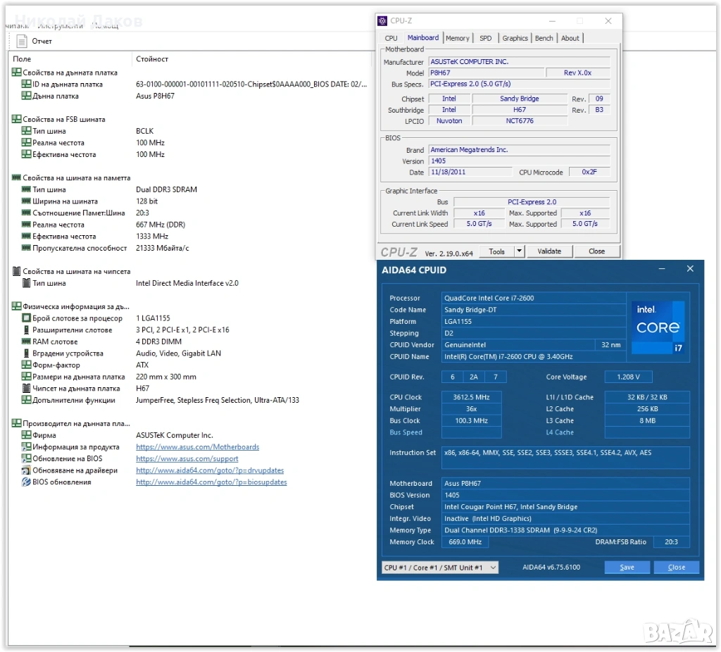 Дъно: Asus P8H67 ver.3.00, не лошо дъно, поддържа всичко на 1155, има