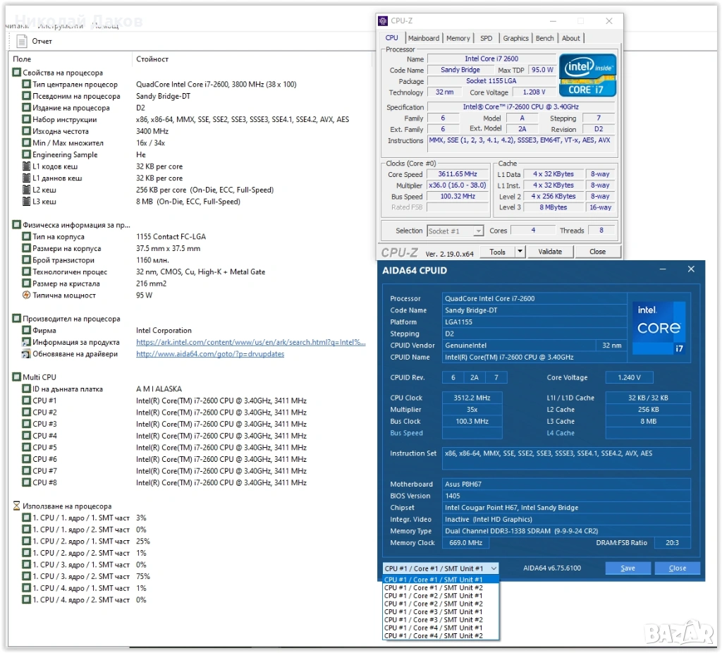 Продавам четириядрен комплект сокет 1155 (четири ядра - осем треда) второ поколение. Частите са следните: