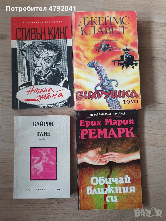Снимка 5. Стивън Кинг-Нощна смяна, Джеймс Клавел-Вихрушка, Байрон-Каин, Ерих Мария Ремарк-Обичай ближния си по 4 евро/бр.