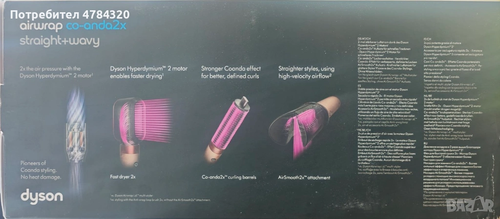 DYSON аrwrap Co-anda2x Straight+Wavy– Много приставки, функции + Bluethooth, ЧИСТО НОВO → Обява 54146596