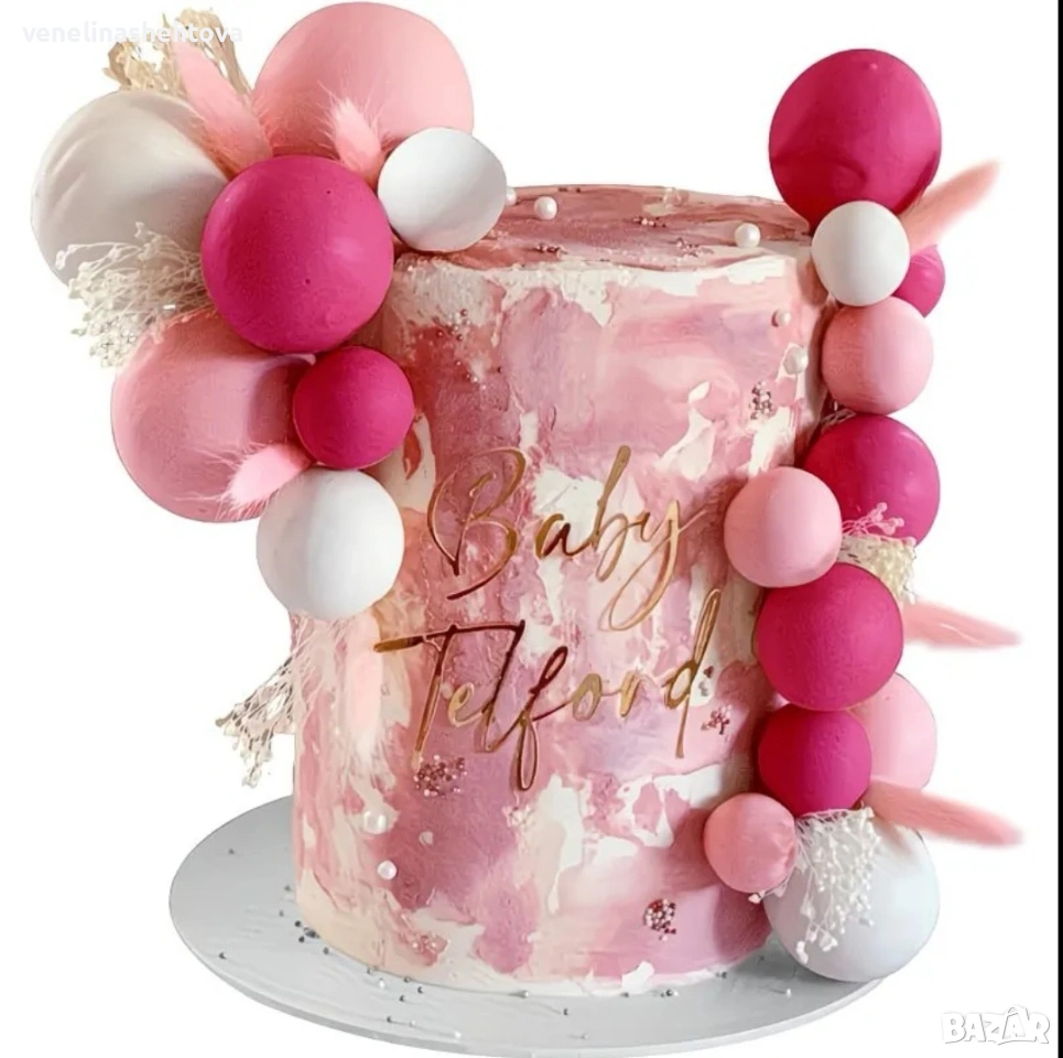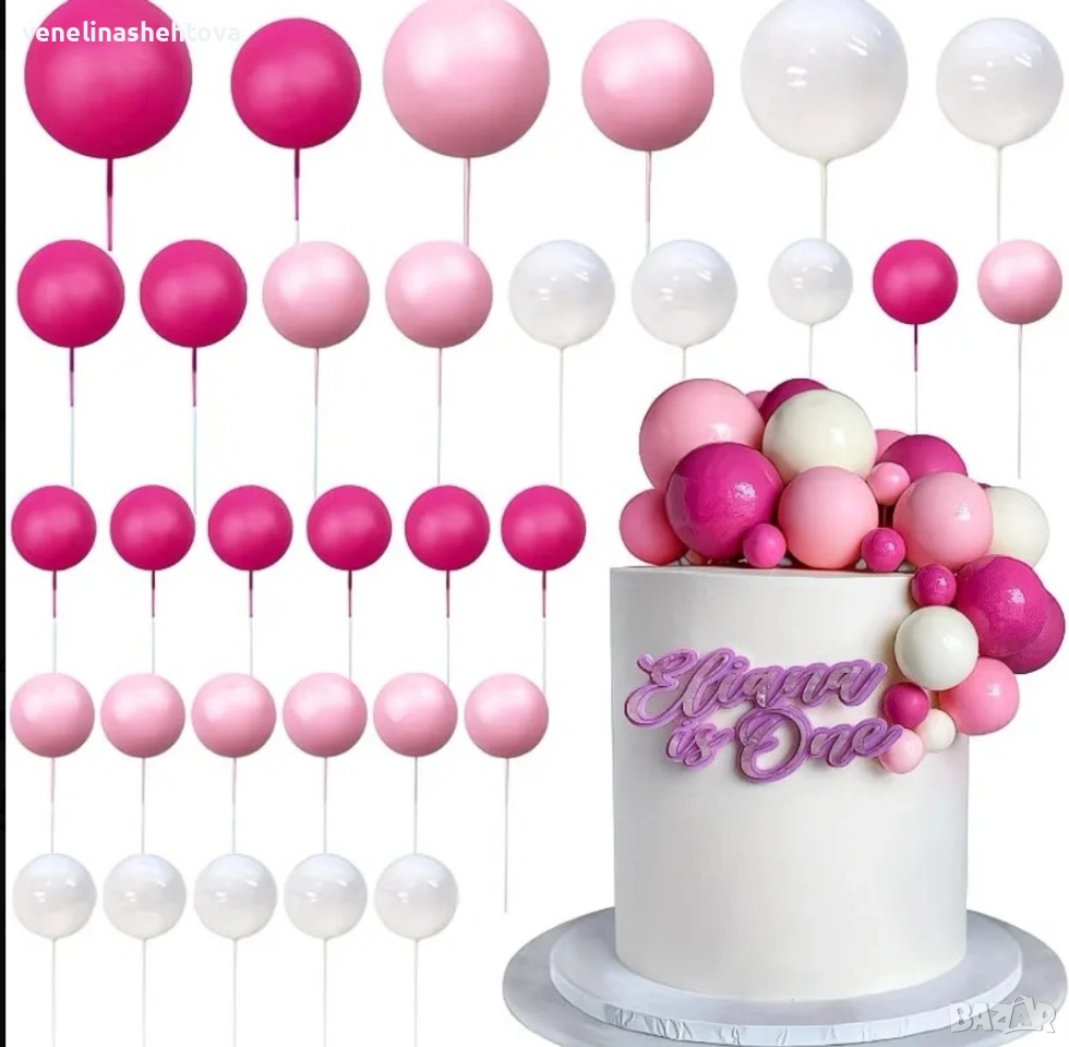 64 броя топчета топки на тел от стиропор светло тъмно розови бели декорация торта → Обява 54146681