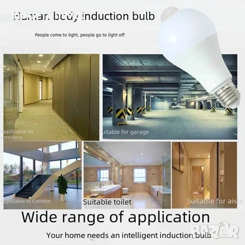 LED крушка със сензор за движение, 12W енергоспестяваща крушка, крушка със светлинен сензор