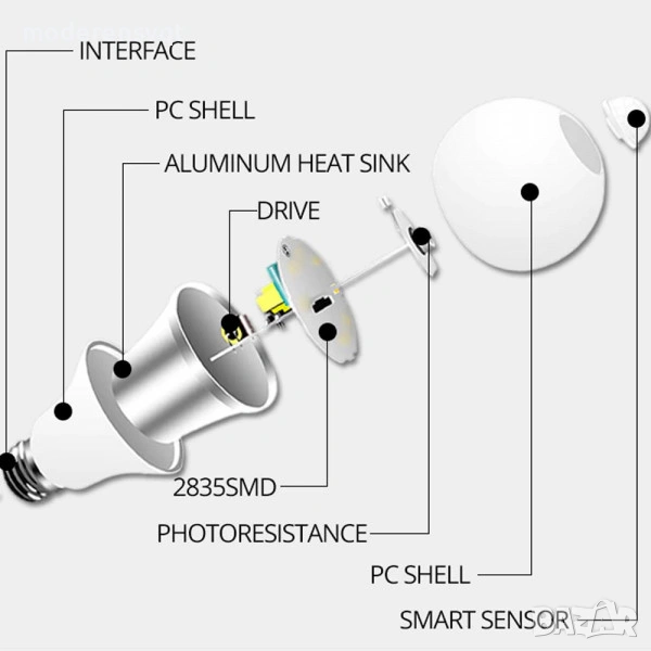 Автоматично включване/изключване на тъмно: сензорът за движение, наричан още пасивен инфрачервен сензор, е най-често използваният тип сензор за движение. Светодиодната крушка с PIR сензор използва инфрачервена технология и реагира на температурни промени, т.е. светлината се включва/изключва автоматично, когато детекторът засече движение или липса на движение на човек/предмет.