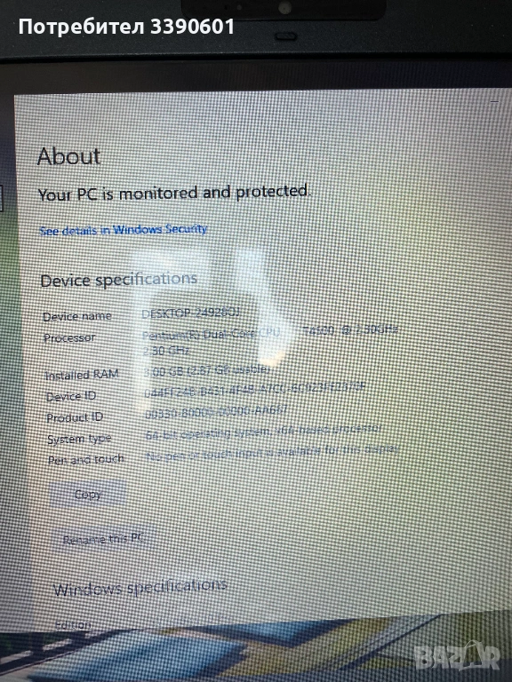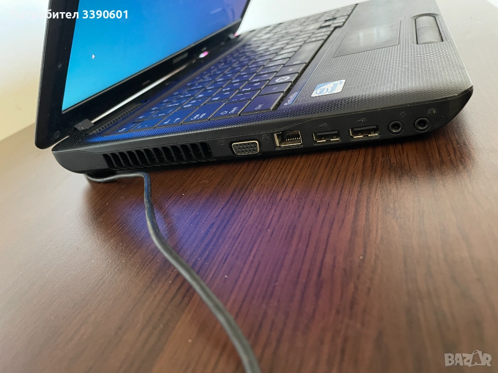 Работещ лаптоп в добро състояние. Не е особено мощен, но е подходящ за лека употреба или проект. 3 GB RAM, Pentium двуядрен T4500 2.3 GHz процесор, 300 GB HDD, Intel видеокарта. Windows 10 64 bit. С оригинално зарядно.